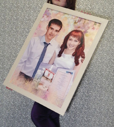 По желанию, Вы можете дополнить портрет багетной рамой, подарочной упаковкой, покрыть его текстурным или акриловым гелем, чтобы вызвать больший восторг в глазах получателя! Выбрать нужные Вам дополнения к портрету можно уже после подготовки эскиза, чтобы понять как багет или текстурное покрытие смотрится именно на Вашем портрете!